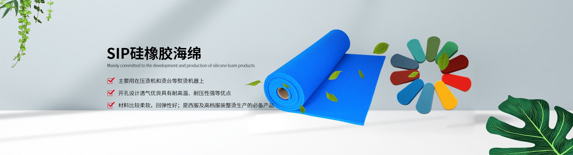 ????我公司生產(chǎn)的硅膠海綿具有耐高溫、耐壓、透氣性能好、抗撕拉、使用壽命長(zhǎng)、環(huán)保等特點(diǎn),主要適用于服裝干洗、水洗熨燙設(shè)備,如壓燙機(jī)和燙臺(tái)等。另外我們也提供各種燙氈、罩布等整燙專(zhuān)用墊料,客戶(hù)可根據(jù)不同熨燙工藝選擇不同的搭配組合,滿(mǎn)足高品質(zhì)的熨燙要求。
